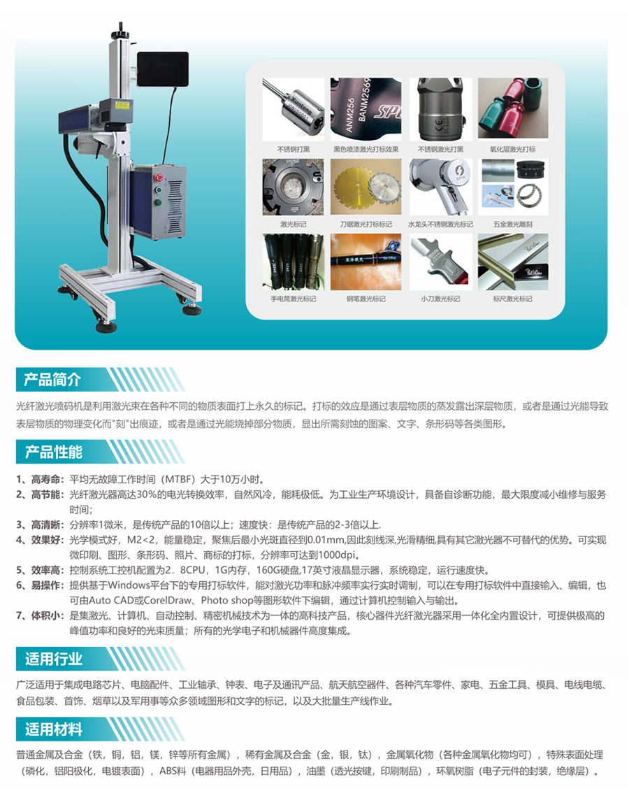 ● 功率大,打標范圍寬,雕刻深度深,可標記大型工件